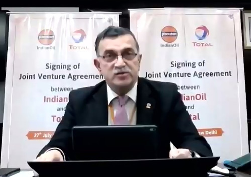 Mr. SM Vaidya, Chairman, IndianOil at the signing of JV agreement between IndianOil and Total (France)Indian Oil Corporation (IndianOil), India's largest refiner and marketer of petroleum products, and Total, a multinational energy major with headquarters in Paris, France, today announced the formation of a 50:50 Joint Venture (JV) company that will manufacture and market high-quality bitumen derivatives and specialty products for the growing road-building industry in India.