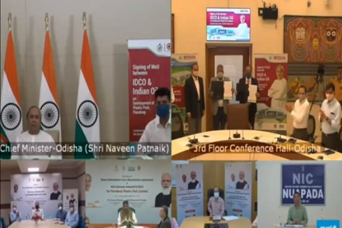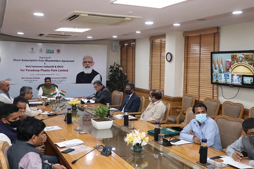Indian Oil Corporation Limited (IOCL) and Odisha Industrial Infrastructure Development Corporation (IDCO) today signed an Memorandum of Understanding (MOU) to develop Paradip Plastic Park. The MoU was signed on a hybrid mode, in the presence of Minister of Petroleum & Natural Gas and Steel Shri Dharmendra Pradhan, Shri Naveen Patnaik, Chief Minister of Odisha and other dignitaries.