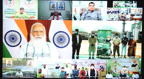 Prime Minister Shri Narendra Modi addressed the World Environment Day event, jointly organized by the Ministry of Petroleum & Natural Gas and the Ministry of Environment, Forest and Climate Change today through a video conference. During the event, the PM interacted with a farmer from Pune who shared his experience of organic farming and use of biofuel in agriculture.