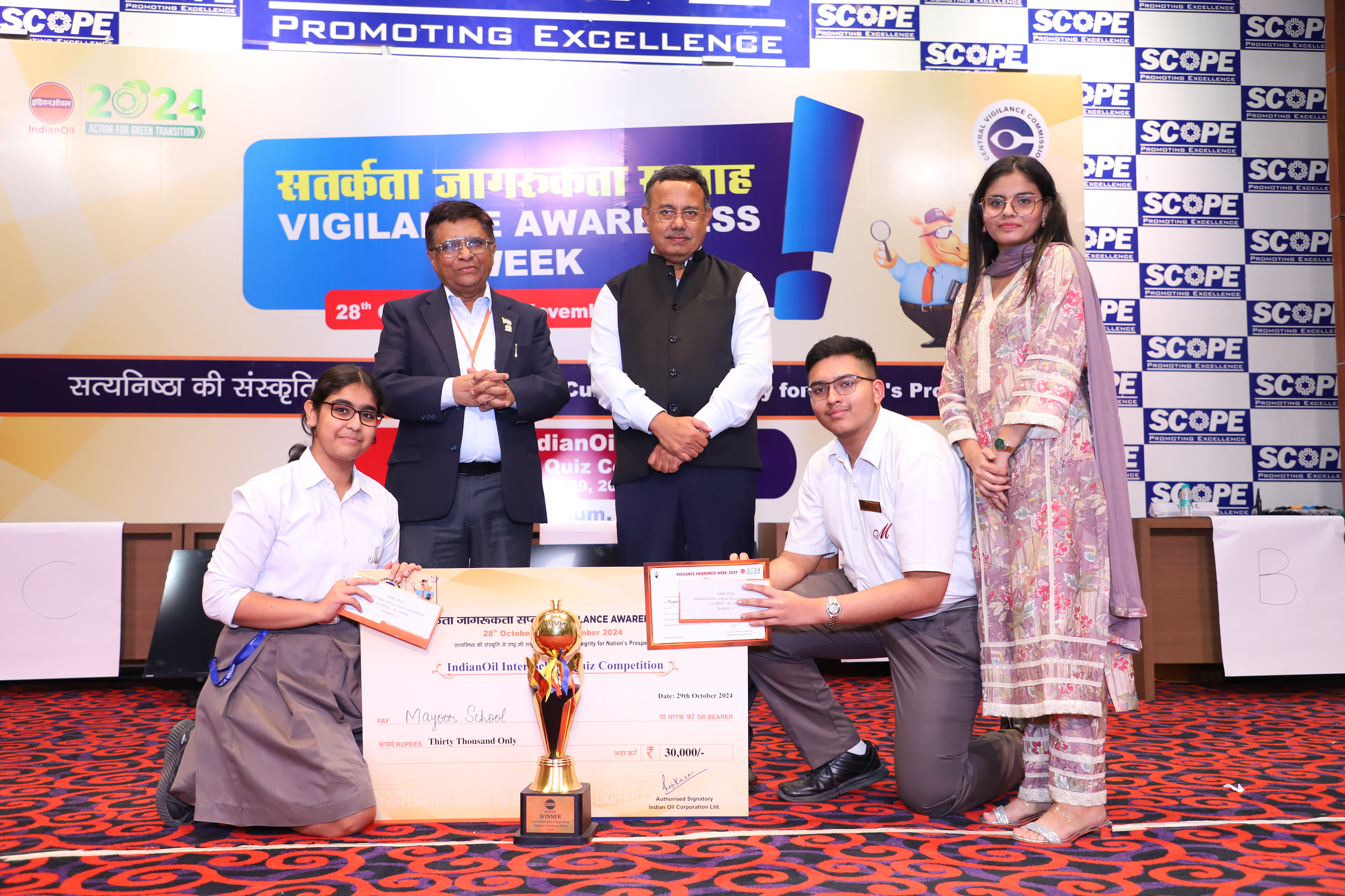 The quiz consisted of three rounds, focusing on the role of vigilance in public life, key initiatives by the Government of India and IndianOil in promoting ethical practices, and current affairs. The winning team, from Mayoor School, Noida received trophies and certificates from Mr. Anant Kumar Singh, along with a special commendation for their outstanding performance.